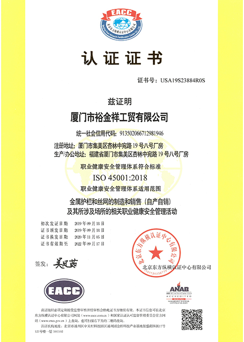 認證證書-職業(yè)健康(中文)