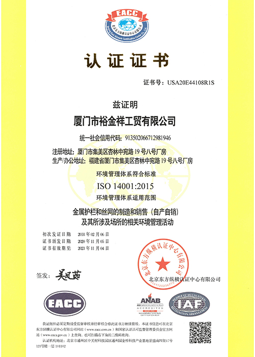 認證證書-環(huán)境管理活動(中文)