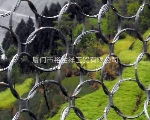 環(huán)形防護網(wǎng):產(chǎn)品特性:用數(shù)股鋼絲盤結(jié)成環(huán)形相互套接而形成的網(wǎng)。其作用是攔截落石防護能量一般為150kj--2000kj