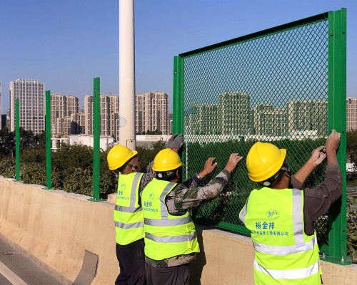 4、橋梁防拋網(wǎng)的網(wǎng)片必須和立柱連接牢靠,網(wǎng)面安裝后平整,無(wú)明顯翹曲和凹凸現(xiàn)象。防拋網(wǎng)施工完畢后,高駐辦將組織相關(guān)人員對(duì)防拋網(wǎng)的質(zhì)量和安裝效果進(jìn)行驗(yàn)收。