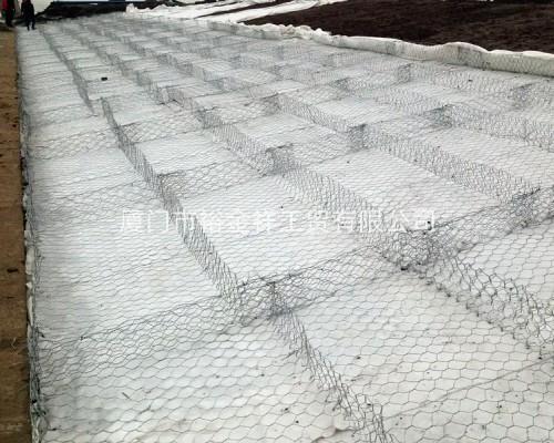 的高度較低,結(jié)構(gòu)形式扁平而大;鍍層鋼絲直徑較格賓細(xì),一般有雙隔板(鋼絲直徑2.0mm)、單隔板(2.2mm)兩種。常用的為雙隔板雷諾護(hù)墊,其優(yōu)點(diǎn)為施工方便、做護(hù)坡可有效防止石頭垮塌、增加結(jié)構(gòu)的抗沖刷能力等。